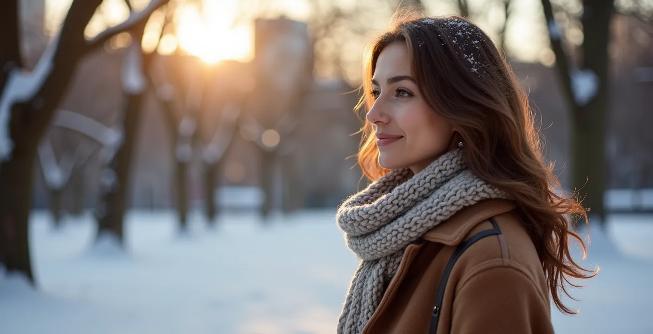 - Scan corporel hivernal (4 min) : En attendant l’autobus, portez attention aux sensations du froid sur votre visage, transformez l’inconfort en objet d’observation neutre.